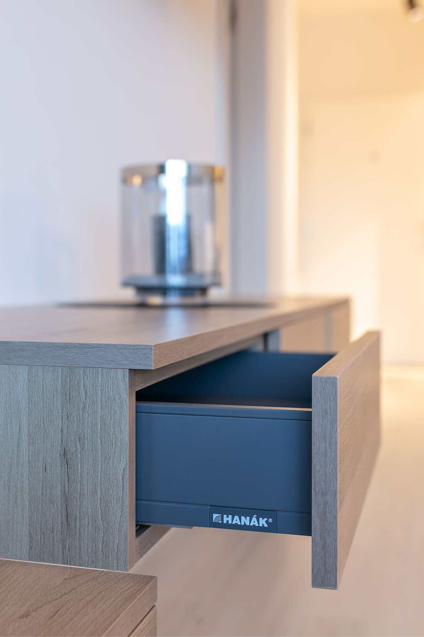 Zladenie matného laku champagne a dubu tobacco pôsobí teplým pohodovým dojmom. Ďalšia krásna realizácia, ktorá je dôkazom, že Interior Concept HANÁK je skutočne prepracovaný a dizajnovo dokonalý.